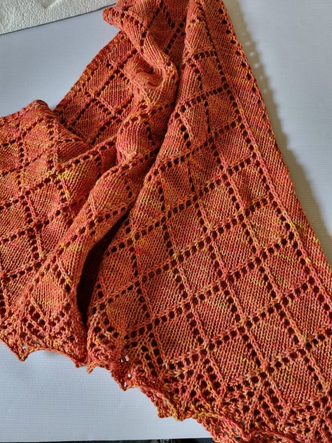 Este chal triangular está inspirado en el viaje de Dorothy por el camino de ladrillos amarillos de “El mago de Oz”; es un camino metafórico que te llevará a tus sueños. Al igual que la aventura de Dorothy, este diseño tuvo una travesía llena de maravillas y descubrimientos. Tejer este chal te entrega una hermosa pieza terminada utilizando un hilado novedoso con una impresionante paleta de colores. Está diseñado especialmente para el hilado “Seis Cabos” - 100% merino de Malabrigo yarn. Puedes ver todos los diseños y colores en la Colección Reconquista. Trabajé con los colores, Flama y Caramelo. Puedes ver mucho mejor cada proyecto en mi perfil de Ravelry